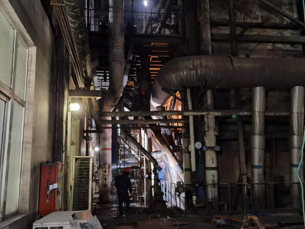 1月9日上午,动力分厂自主检修项目除3#锅炉3号给煤机调试及4#锅炉高温过热器集气集箱出口垫子更换任务外基本完成,外委检修项目3#4#锅炉部分水冷壁的更换检查试漏完毕,3#4#锅炉局部筑炉作业正在进行,目前外委施工方正在对3#锅炉炉膛内搭设的脚手架等措施项目进行拆除,分厂正在开展3#锅炉的启炉前的检查准备工作。