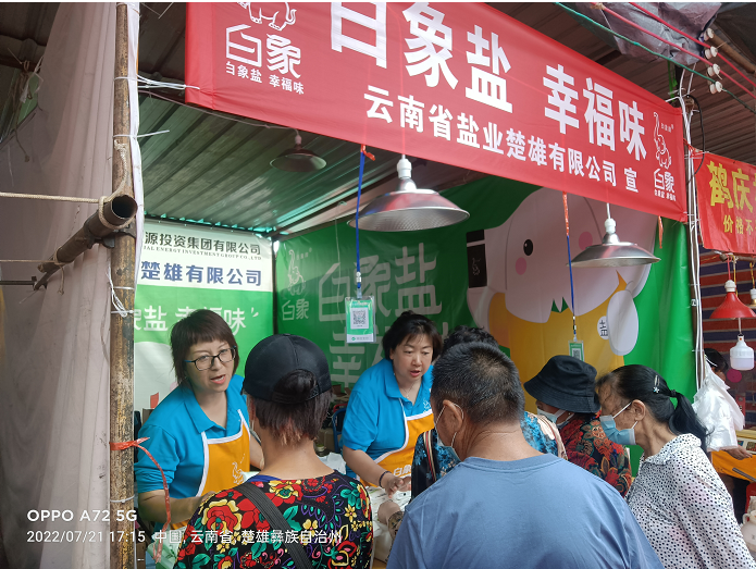 楚雄销售部人员紧紧围绕“白象盐、幸福味”主题,主动借势而为,组织销售部人员走进游人如织的“火把节”活动现场,通过为游客现场解说食盐功能、买盐赠送小礼品等方式进行宣传。