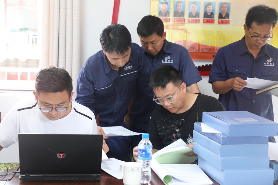 检查组听取分公司基本概况、工艺产能、安全生产管理等工作汇报后,在分公司领导班子和相关负责人的陪同下,检查组一行深入矿山车间对矿山矿容矿貌、生产井场、生产设备实施、作业现场相关标识等情况进行了现场检查;详细查阅了营业执照、勘察许可证、探矿权使用费(占用费)缴纳凭证、钻探编录记录原始资料等台账资料。