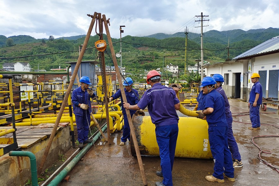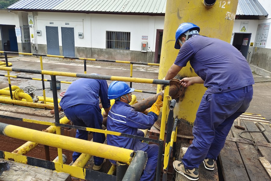 矿山车间10号、12号采卤井卤水沉沙桶为密闭罐体,因使用年限较长,部分罐体出现腐蚀变薄,加之罐体地处河边,若发生泄漏流入河中将无法回收,造成污染。为了排除隐患,矿山车间组织相关人员将两个沉沙桶从小河边搬运至50米外的油水分离池区进行安装,与其他采卤井沉沙桶进行集中管理。整改过程中,重约200千克、高1.5米、直径0.8米的沉沙桶给作业人员带来不小困难,他们分工协作,用自制手推车搬运、用三角扒杆吊装、对管道焊接……经过3天的共同努力,成功将两个沉沙桶迁移安装到了指定位置,迁移后的沉沙桶若发生泄漏,卤水将进入卤水分离,达到了便于回收的目的,有效降低了采卤10、12号井沉沙桶泄漏污染环境的风险。(李章文/文图 刘红波/校对)