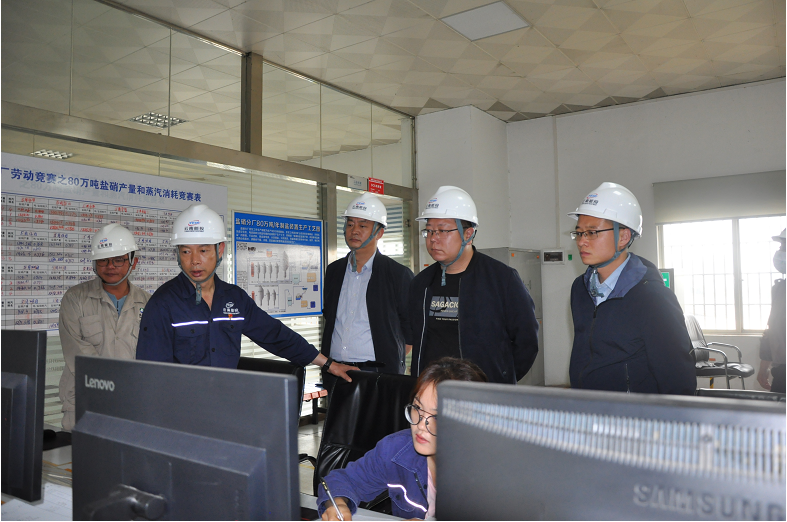 盐业事业部计划经营分部部长张路、滇中公司工业盐销售部部长代龙昌陪同参观。(道继炯/文图 黄爱芸/校对)