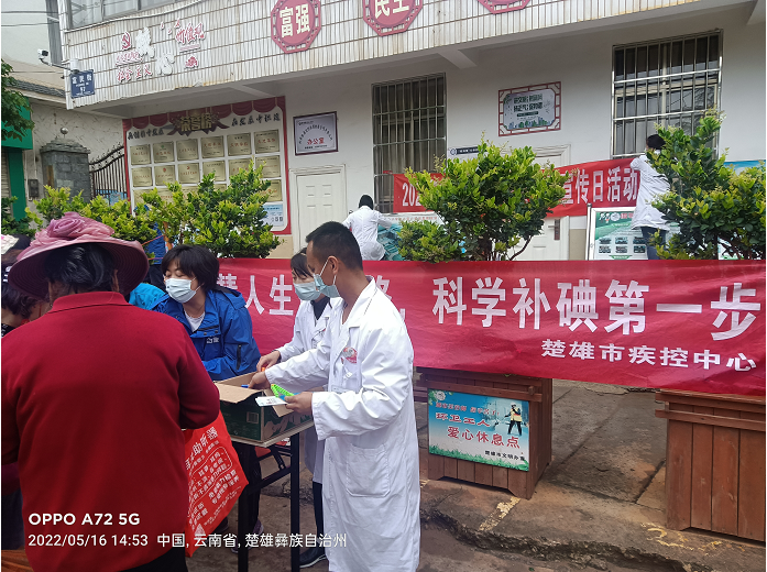 滇中公司楚雄销售部 报道 5月15日是全国第29个“防治碘缺乏病日”,今年的主题是“智慧人生健康路,科学补碘第一步”。16日下午14点30分楚雄市疾控中心、云南省盐业楚雄有限公司在楚雄市鹿城镇富民社区卫生院联合开展全国第29个“防治碘缺乏病日”主题宣传活动,向广大市民宣传碘缺乏病防治知识,普及科学补碘常识。