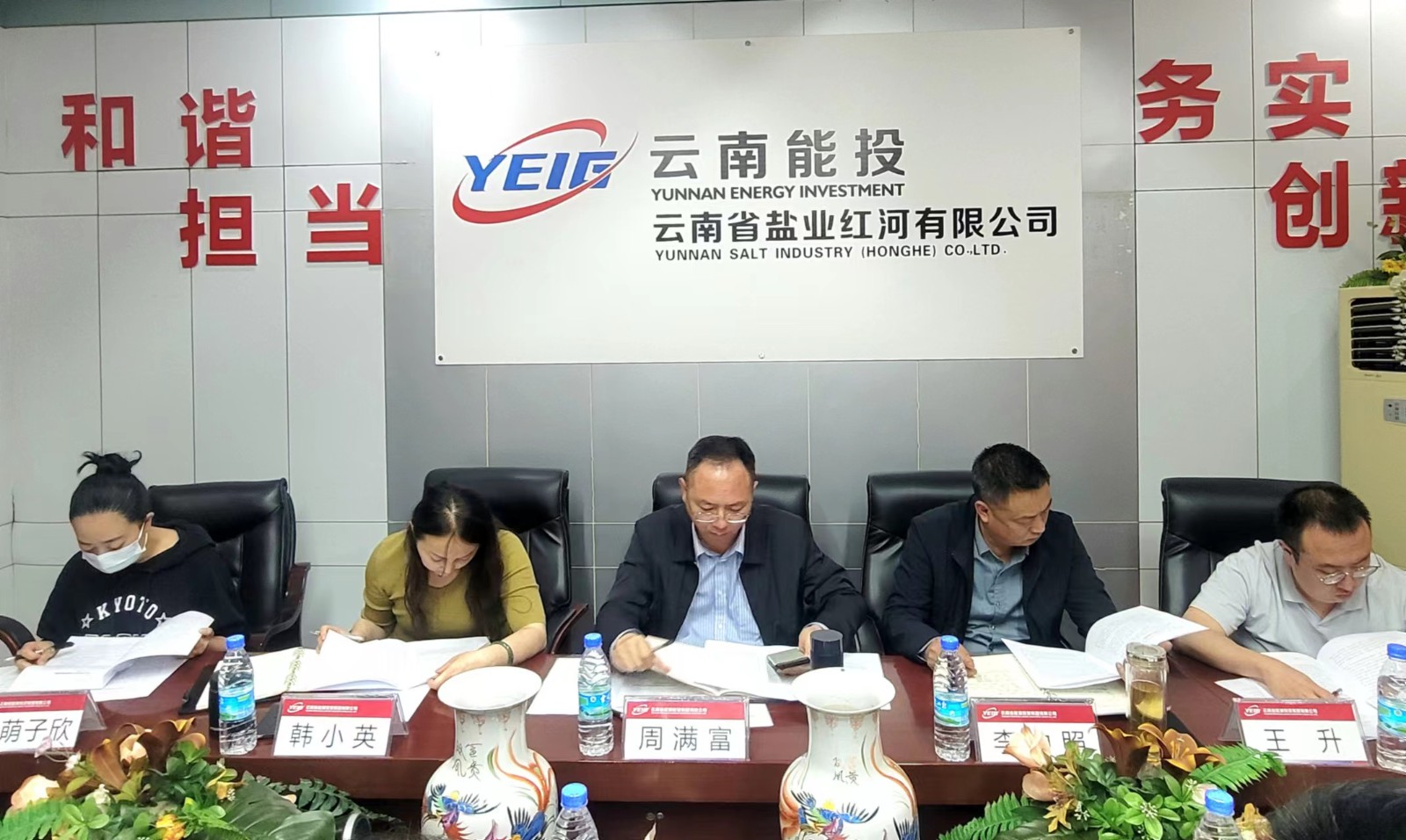 滇东公司 报道 2022年5月6—7日,股份公司党委书记、董事长周满富,党委委员、副总经理赵矛,副总经理李中照,副总经理、工会主席韩小英一行到盐业滇东公司调研指导工作,召开员工交流会议,开展廉洁责任谈话,听取员工意见建议。