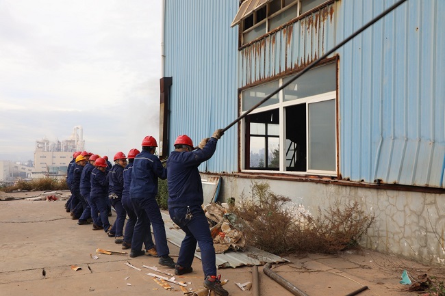 近日,因废旧厂房拆除,导致原先铺设在厂房内供污水处理使用的电缆线受到影响,为保证昆明盐矿污水处理供电正常运行,在矿党委统一安排下,各支部党员积极响应党委号召,主动参与党员突击队活动。活动分为两个突击小组,将原先电缆线从厂房中分段移除。所有党员同志充分发扬不怕累、不怕脏的精神,甩开膀子、撸起袖子,将电缆线扛在肩上,按照新的铺设线路将电缆重新铺设,在最短的时间内解决了污水处理的供电问题。