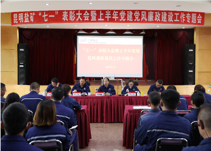 昆明盐矿 报道 为庆祝中国共产党成立101周年,7月1日,昆明盐矿召开“七一”表彰大会暨上半年党建党风廉政建设工作专题会,会议由党委副书记、工会主席左佳主持。